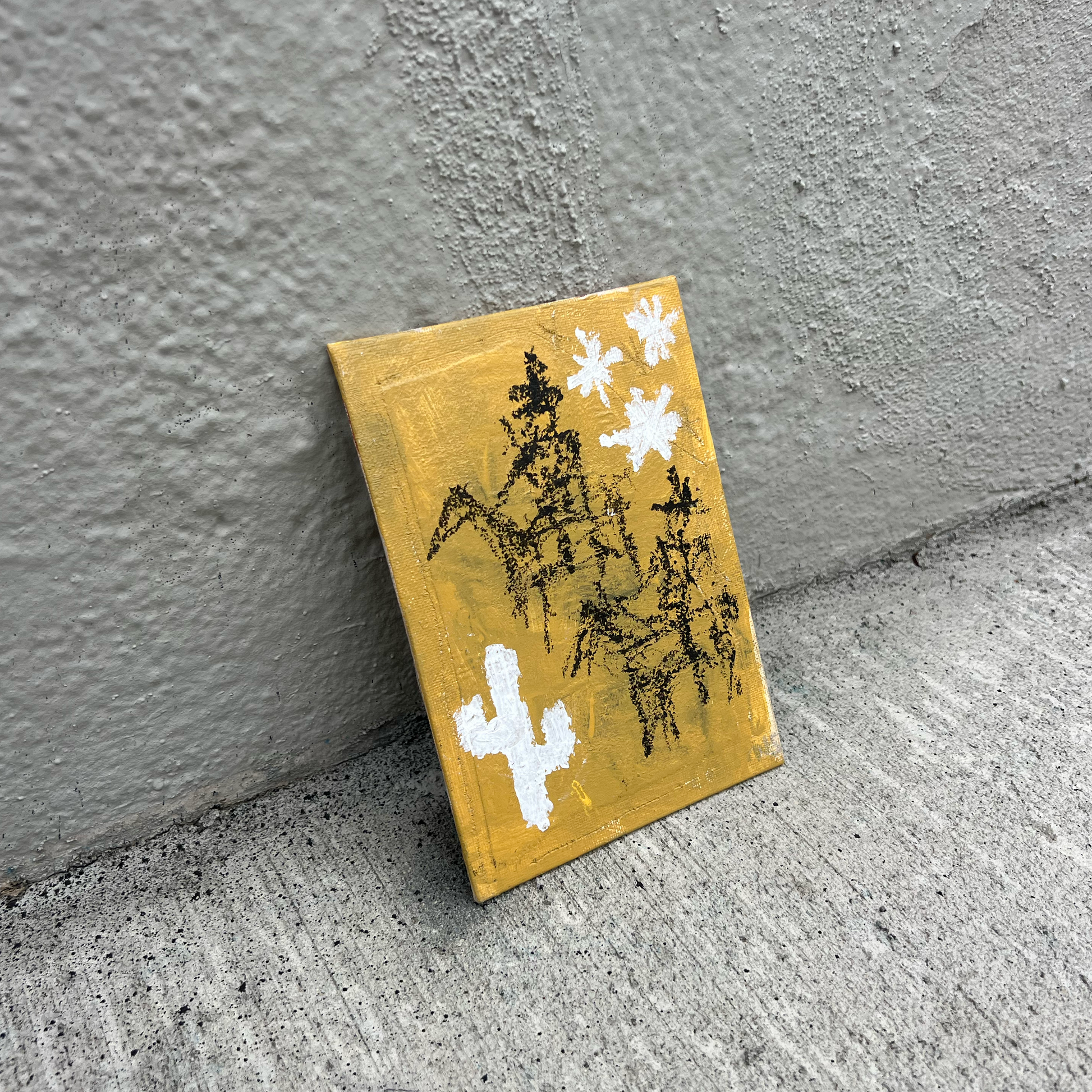 Medium: Original work - House paint, oil pastel, conté crayon, butcher paper on canvas board